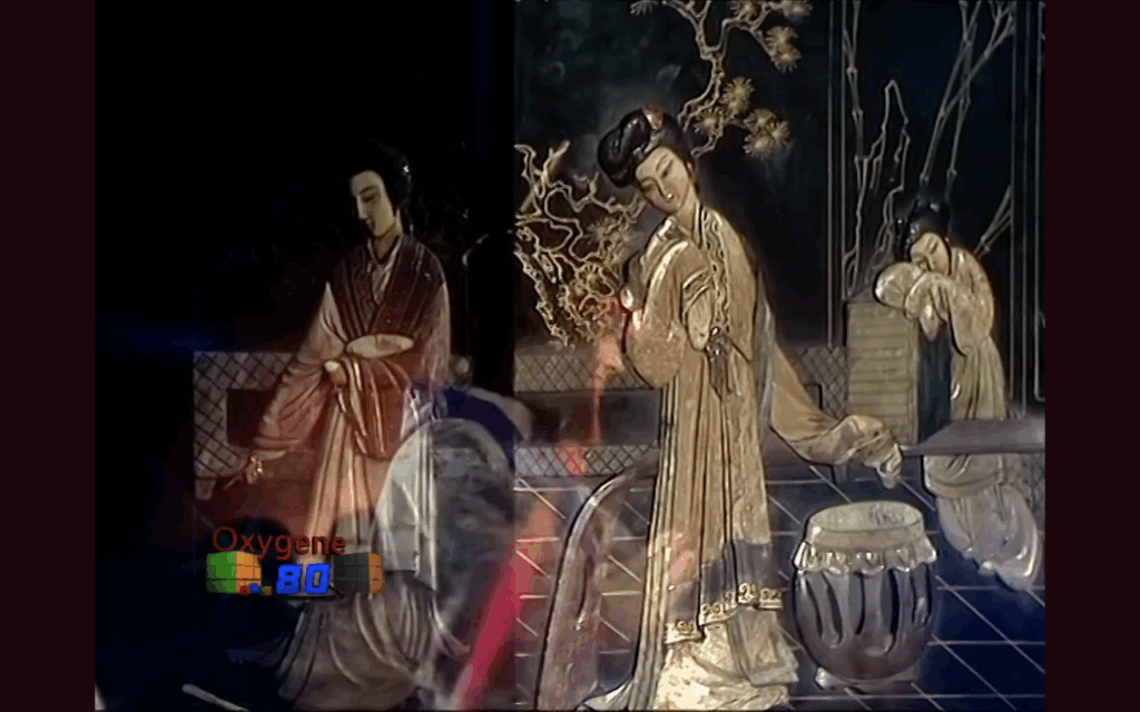 このミュージックビデオには、明確な物語の筋があるわけではありません。映像の中には、金魚、おかめ風の仮面、能面、ネオン街、竹竿、侍、夕陽など、「日本的」とされるモチーフ(あるいは東洋風のもの)が次々と現れます。なかでも目を引くのは、ヒロインの和装姿です。また曲の最後にドラが鳴ります。ここでも日本と中国のイメージは混同されています。